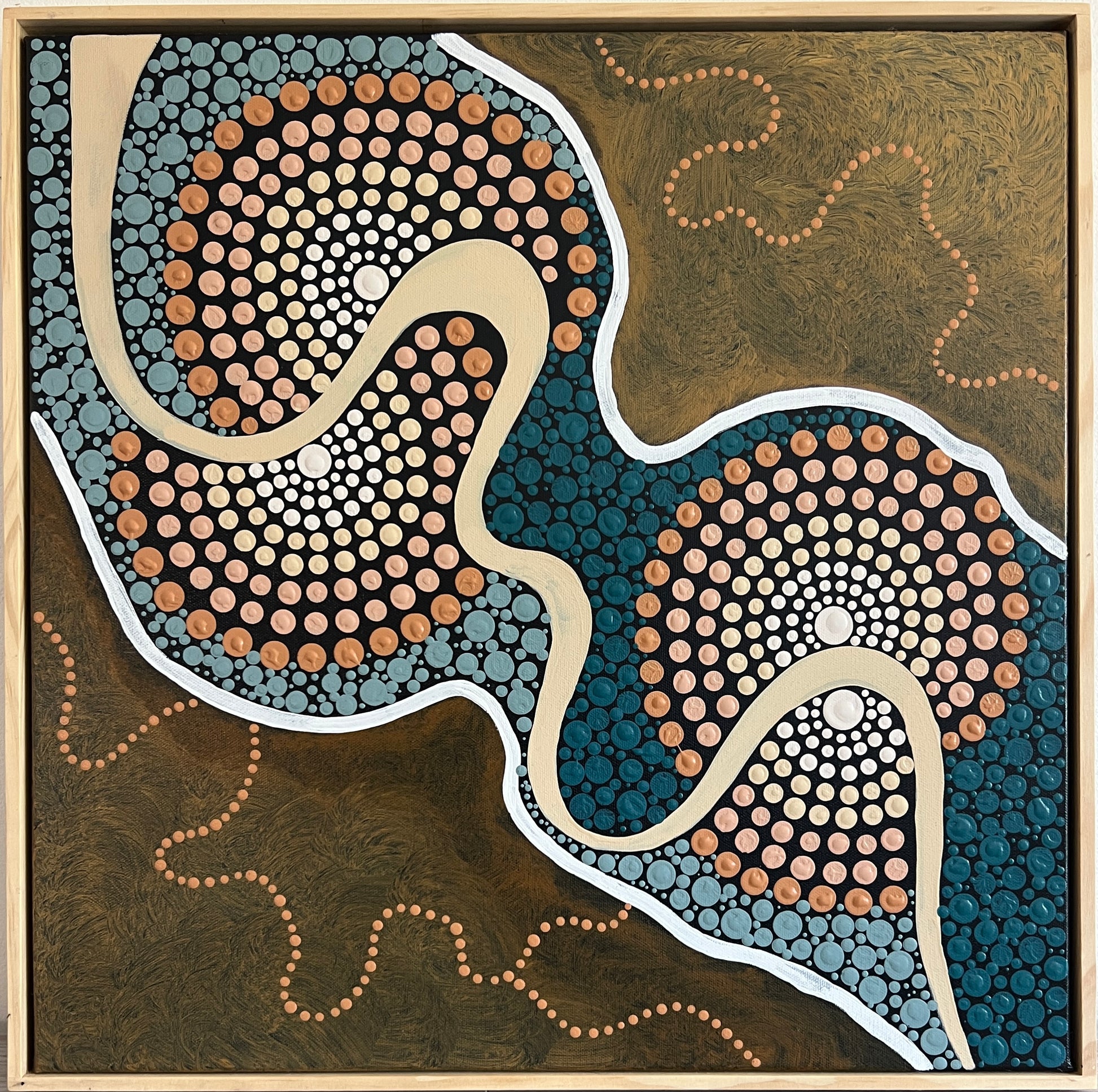 This painting comes framed ready to hang measuring 52x52cm